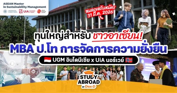 สวัสดีชาว Dek-D ทุกคนค่ะ~ วันนี้พี่ลูกหมูจะมาแนะนำทุนจากโครงการที่น่าสนใจมากกก นั่นก็คือ ‘ASEAN Master in Sustainability Management’ (AMSM) เป็นหลักสูตรปริญญาโท MBA ด้านการจัดการความยั่งยืนนั่นเองค่ะ