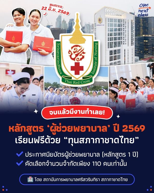 สำหรับใครที่อยากก้าวเข้าสู่สายงานสุขภาพ โอกาสมาถึงแล้ว! กับหลักสูตรประกาศนียบัตร ‘ผู้ช่วยพยาบาล’ (1 ปี) โดย สถาบันการพยาบาลศรีสวรินทิรา สภากาชาดไทย ซึ่งมาพร้อมกับ “ทุนสภากาชาดไทย” เรียนฟรีตลอดหลักสูตร แถมรับจำนวนจำกัดเพียง 110 คนเท่านั้น