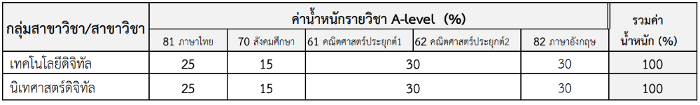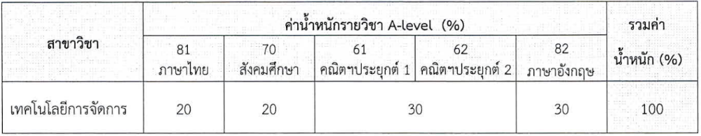 - และใช้องค์ประกอบคะแนน A-Level ดังนี้