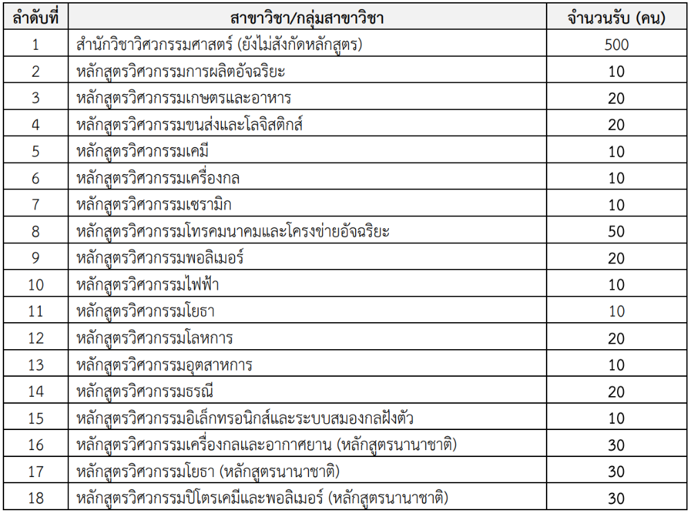 - สาขาวิชาวิศวกรรมอุตสาหการและการจัดการข้อมูล (หลักสูตรนอกเวลา) 30 ที่นั่ง