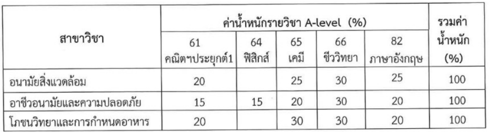 - และมีเกณฑ์ค่าน้ำหนัก A-Level ดังนี้