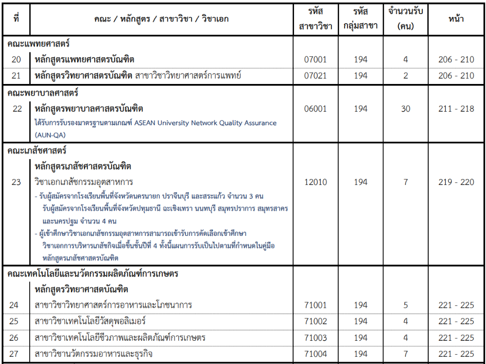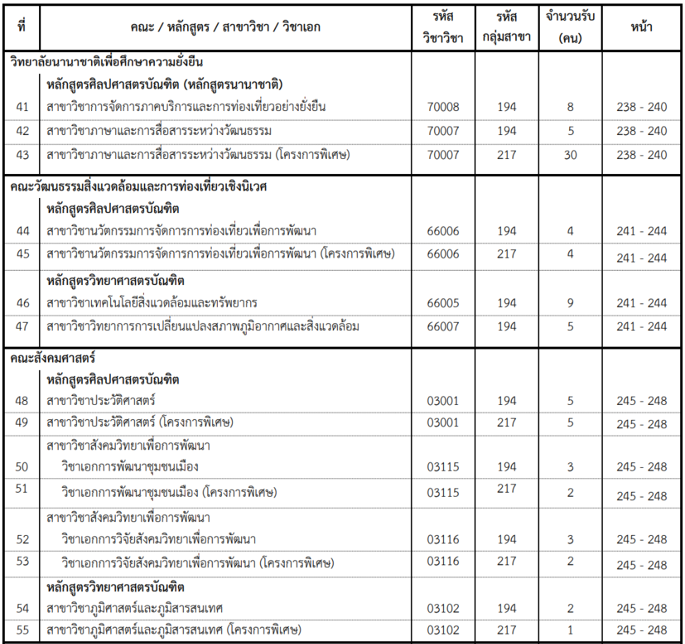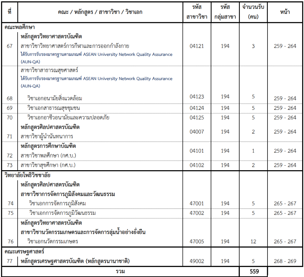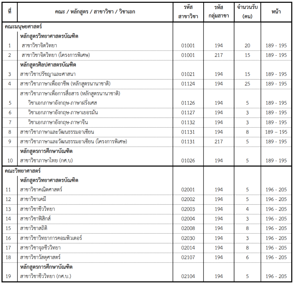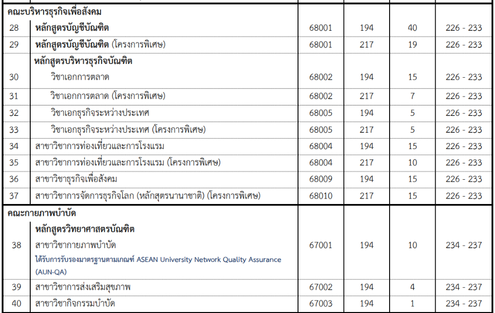 รายชื่อคณะสาขาที่เปิดรับ ผ่านโควตา รร.พื้นที่มหาวิทยาลัย มศว