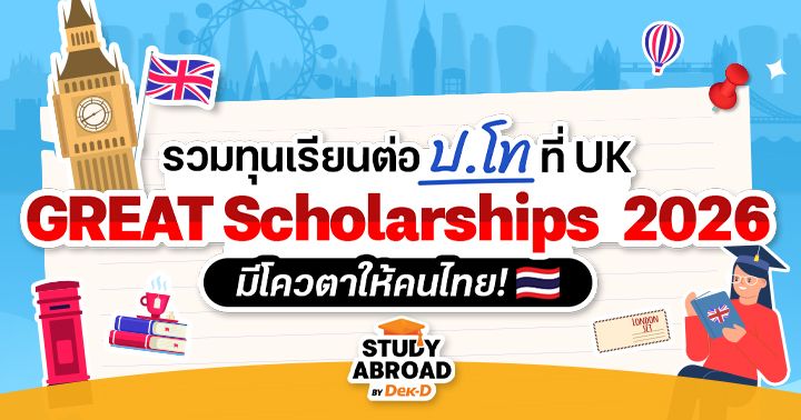 และสำหรับใครที่ฝันอยากไปเรียนต่อที่ UK แบบเซฟงบ ข่าวดีคือตอนนี้ ‘GREAT Scholarships 2026-27’ ทุนสุดปังในความร่วมมือของรัฐบาล UK และ British Council ได้เปิดรับสมัครแล้วค่ะ ปีนี้จะมียูไหนเข้าร่วมบ้าง ตามมาเช็กรายละเอียดกันเลยค่า~