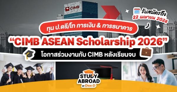 สวัสดีชาว Dek-D ทุกคนค่ะ สำหรับน้องๆ คนไหนที่อยากเติบโตในสายงานการเงินและธนาคาร วันนี้พี่ลูกหมูก็มีทุนดีๆ จากองค์กรชั้นนำมาฝากกันค่ะ เพราะตอนนี้ ‘CIMB ASEAN Scholarship 2026’ จากธนาคารซีไอเอ็มบี ได้เปิดรับสมัครแล้วค่ะ