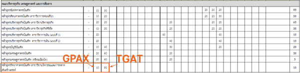 - วิทยาลัยนานาชาติ สาขาวิชาภาษาอังกฤษเพื่อการสื่อสารธุรกิจ (นานาชาติ) ใช้ TGAT 70%