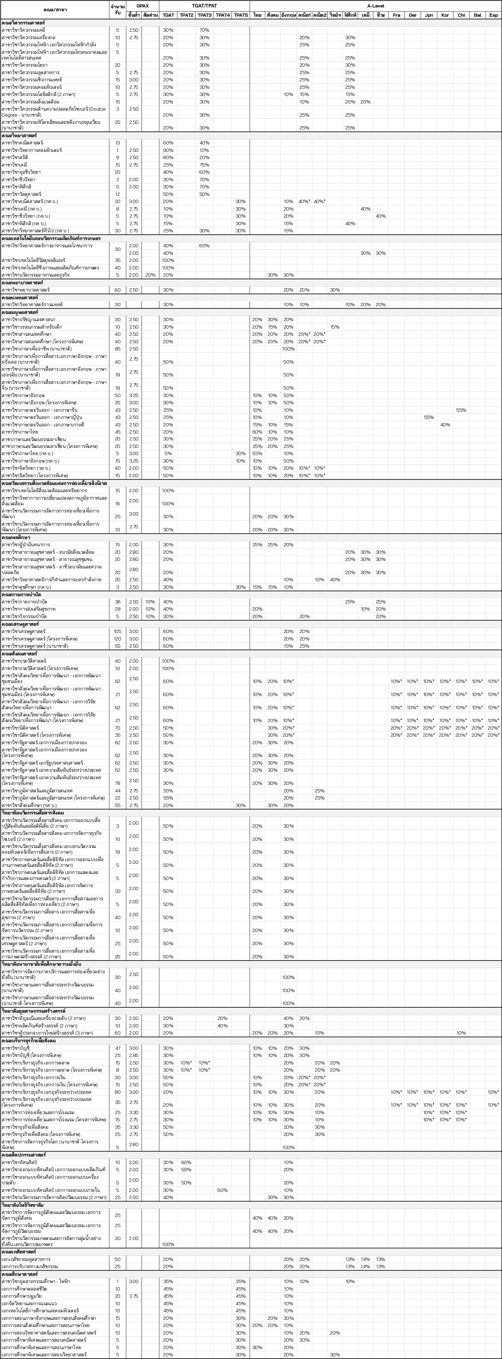 หมายเหตุ : ข้อมูลข้างต้น เป็นค่าน้ำหนัก หรือสัดส่วนคะแนนที่ใช้คัดเลือก ส่วนรายวิชาที่มี * หมายถึง ต้องเลือกใชัคะแนนวิชาใดวิชาหนึ่ง