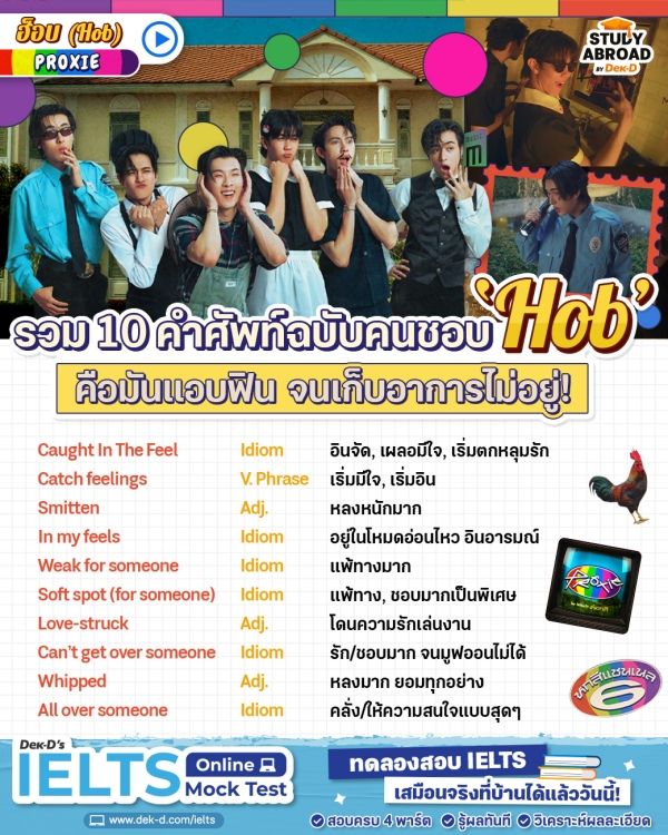 วันนี้ #แจกศัพท์ฉบับเด็กนอก เลยขอพาทุกคนมาอัปคลังศัพท์ฉบับคนชอบ ‘HOB’ ลิสต์มาให้ทั้งคำสแลงและสำนวนที่ Native ใช้จริง จะจดไปตั้งแคปชัน หรือแอบส่งสัญญาณให้คนที่เราชอบช่วงสงกรานต์ ก็ได้หมด! // ก่อนจะเต้นแข่งกับพ้อกสีช่วงสงกรานต์ รีบตามมาจดศัพท์กันก่อนดีกว่า~