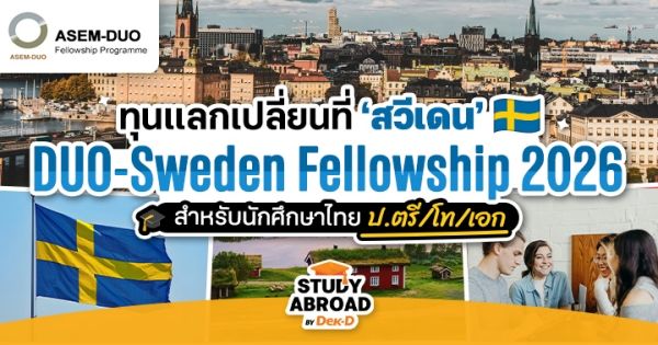 Hej! สวัสดีน้องๆ ชาว Dek-D ทุกคนค่ะ ใครใฝ่ฝันอยากบินไปสัมผัสธรรมชาติแบสวยสับ พร้อมอ้าแขนรับประสบการณ์เรียนและใช้ชีวิตที่ ‘สวีเดน’ สักครั้ง ปฏิเสธไม่ได้เลยว่าต้องมีงบไว้พอสมควร แต่วันนี้พี่ลูกหมูจะมาชี้เป้าทุนแลกเปลี่ยน ‘DUO-Sweden Fellowship Program’ ซึ่งมีโควตาสำหรับนักศึกไทยทั้งระดับ ป.ตรี และบัณฑิตศึกษาเลยค่ะ