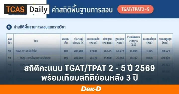 มาแล้ว!! สถิติคะแนน TGAT/TPAT 2 - 5 ประจำปี 2569