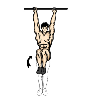 เป็นท่าโหนกับบาร์ โดยให้มือของหนุ่มๆ ห่างกันประมาณช่วงหัวไหล่ ส่วนขานั้นก็ชิดกัน แล้วยกเข่าทั้งสองข้างขึ้นมา ค้างไว้ประมาณ 4-5 วินาที แล้วค่อยผ่อนขาลงไป