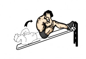 เป็นท่าซิทอัพอีกรูปแบบหนึ่ง ซึ่งนั่งทำบนอุปกรณ์คล้ายม้านั่งแบบไม่มีพนัก แต่มีคานสำหรับให้เท้าทั้งสองข้างไว้เกี่ยวยึดเวลานอน แล้วซิทอัพแบบห้อยหัวลงไป
