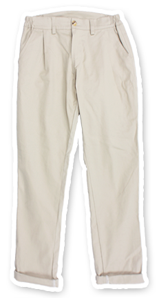 กางเกงผ้าขายาวสีขาวครีม เนื้อผ้านุ่ม แม้จะเห็นว่ามีดีไซน์เรียบๆ แต่ว่าตรงขอบกางเกงด้านข้างก็มีกิมมิกเท่ๆ ที่เค้าดีไซน์ให้เป็นขอบแบบยางยืด ที่จะทำให้หนุ่มๆ ใส่ได้สะดวก และสามารถเท่ได้โดยที่ไม่ต้องสวมเข็มขัดเลยก็ได้
