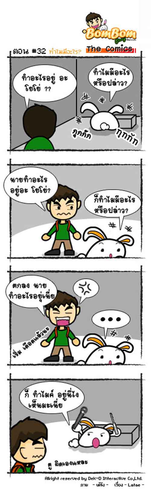 BomBom & YoYo : ทำไมมีอะไร Dek-D Team - ทีมคอลัมนิสต์ Dek-D #การ์ตูน #yoyo #BomBom 12/02/53 10:52 น. 5,398 views Facebook Twitter Line Dek-D Team ทีมคอลัมนิสต์ Dek-D