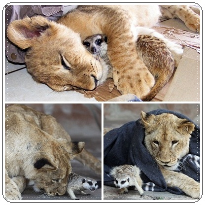 ไม่น่าเชื่อว่า สิงโต และ เมียร์แคต สัตว์ป่าที่มีนิสัยไม่เหมือนกันเลย จะมารักและผูกพันจนเป็นเพื่อนสนิทกันได้ โดยเหตุการ์นี้เกิดขึ้นแล้วจ้ะ น้องๆ ชาว Dek-D.com ที่สวนสัตว์ป่าซาฟารี เมืองซันซิตี้ ในประเทศแอฟริกาใต้ โดยพวกมันจะกิน เล่น และนอนกอดกันเป็นประจำทุกวัน สำหรับเหตุการณ์นี้ มาร์เซลล์ ทัวร์เนียร์ วัย 33 ปี เจ้าของสวนสัตว์ป่าซาฟารี ได้เปิดเผยว่า ซินซี่ เป็นลูกสิงโตเพศเมีย อายุ 6 ปี ที่ทางสวนสัตว์ได้รับเลี้ยงไว้ เพราะแม่ของมันไม่ยอมเลี้ยง ส่วน บ๊อบ เป็นเมียร์แคตเพศเมีย อายุ 2 ปี สัตว์ป่าตัวดังประจำสวนสัตว์ ทั้งสองตัวเป็นเพื่อนรักต่างสายพันธุ์ที่สนิทสนมและรักกันมาก พวกมันกิน และเล่นด้วยกันตลอด รวมไปถึงตอนนอนที่จะต้องนอนกอดกันเป็นประจำ ซึ่งนิสัยโดยปกติของแคตเมียร์แล้วจะเป็นสัตว์ที่ใจร้อน และมีอาการกราดเกรี้ยวบ้าง แต่สำหรับบ๊อบมันไม่ใช่ เพราะมันใจเย็น มีเพื่อนที่เป็นสัตว์สายพันธุ์อื่นอยู่ไปทั่วสวนสัตว์