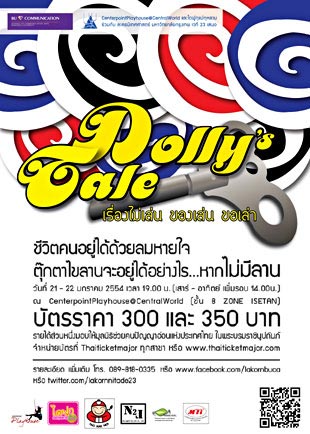 มาร่วมปลดปล่อยชีวิตที่ควบคุมให้เป็นอิสระ Dollys tale เรื่องไม่เล่น ของเล่น ขอเล่า ระหว่าง เวลา 14.00 น. และ 19.00 น. ณ โรงละคร Centerpoint Playhouse @ CentralWorld (ชั้น 8) บัตรราคา 300 และ 350 บาท จำหน่ายบัตรที่ ThaiTicketMajor ทุกสาขา น้องๆ ชาว Dek-D.com คนไหนที่สนใจก็รีบไปจับจองซื้อบัตรกันเลยนะคะ หรือมีข้อสงสัยก็สอบถามกันได้ที่ โทร. 0-2262-3456 หรือ www.thaiticketmajor.com และเยี่ยมชมเว็บไซต์ได้ที่ www.lakornbuca.com ค่ะ ^^