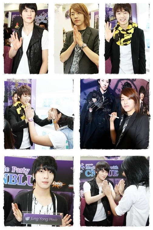 ผ่านพ้นไปเป็นที่เรียบร้อยแล้วนะจ๊ะ สำหรับงาน Magic Party With CNBLUE ที่จัดขึ้นเมื่อวันพฤหัสบดีที่ผ่านมา (27 ม.ค.) ณ ธันเดอร์โดม เมืองทองธานี โดยงานนี้เป็นปาร์ตี้สุดเอ็กซืคูลซีฟที่จัดขึ้นเพื่อเอาใจแฟนคลับชาวไทยของ 4 หนุ่มร็อคแบนด์สุดฮอตจากแดนกิมจิอย่าง CNBLUE โดยเฉพาะ และพี่ปัดก็ไม่พลาดที่จะไปเก็บภาพบรรยากาศความสนุกสนานและความประทับใจในปาร์ตี้ครั้งนี้มาฝากน้องๆ ชาว Dek-D.com เหมือนเคย ก่อนที่จะไปสนุกสุดมันส์กันภายในงานปาร์ตี้ 4 หนุ่ม CNBLUE ทั้ง จองยงฮวา, ลีจงฮยอน, ลีจองชิน และคังมินฮยอก ก็ขอไปพบปะอย่างใกล้ชิดกับแฟนคลับชาวไทยกันก่อนที่งานมีตแอนด์กรี๊ด ที่โฮลิก้า โฮลิก้า ช็อป สยามสแควร์ ซอย 10 งานนี้เล่นเอาสยามสแควร์เกือบแตกเลยจ้ะ แล้วก็ถึงเวลาสุดมันส์ที่ทุกคนต่างรอคอยกับปาร์ตี้สุดเอ็กซ์คลูซีฟ ที่งานนี้ 4 หนุ่ม CNBLUE ก็ไม่พลาดที่จะขนเพลงฮอตฮิตของพวกเขาทั้ง Im a loner, Love light, Now or never. One time และ Love มาให้แฟนคลับชาวไทยทุกคนได้ร้องตามกันอย่างสนุกสนาน ต่อด้วยการพักเบรกพูดคุยแบบเป็นกันเองสุดๆ โดยทั้ง 4 หนุ่มขอเริ่มต้นทักทายแฟนคลับชาวไทยด้วยประโยคภาษาไทยน่ารักๆ อย่าง... มินฮยอก : คิดถึงจังเลย ยงฮวา : สนุก จงฮยอน : สุดยอด จองชิน : ต้มยำกุ้ง มินฮยอก : อยู่กับผมนานๆ นะครับ สุดยอด พิธีกร : เวลาที่พวกคุณทั้ง 4 ยืน จะมีคนนึงที่สูงกว่าเพื่อน แล้วสูงแบบนี้เวลาถ่ายรูปเคยมีปัญหาบ้างรึเปล่าครับ? จองชิน : ไม่มีปัญหาเลยครับ เพราะผมจะถอยหลังไปหนึ่งก้าว เพื่อที่จะได้ไม่สูงไปกว่าเพื่อนๆ ครับ พิธีกร : มินฮยอกเคยให้สัมภาษณ์ว่าคุณชอบและอยากเจอคุณคิมแทฮีมากๆ ไม่ทราบว่าจนถึงตอนนนี้คุณได้เจอกับเธอแล้วรึยัง แล้วถ้าเจอจะพูดอะไรกับเธอครับ? มินฮยอก : ยังเลยครับ แต่ช่วงนี้คุณคิมแทฮีมีผลงานละครเรื่อง My Princess ผมเลยได้ติดตามทุกอาทิตย์ ถ้าได้เจอเธอก็จะพูดว่า สวย (ภาษาไทย) พิธีกร : วันวาเลนไทน์ที่จะมาถึงนี้ อยากจะบอกแฟนคลับชาวไทยว่าอะไรครับ? จองชิน : I Love You จงฮยอน : ก่อนที่ผมจะบอกรัก ผมจะเอาช้อกโกแลตไปละลายแล้วเอามาทาหน้าก่อน แล้วค่อยบอกว่ารักคุณครับ ยงฮวา : รักจริงๆ รักมากๆ มินฮยอก : คิดถึงจังเลย รักคุณครับ อยู่กับผมนานๆ นะครับ (ภาษาไทย) หลังจากการสัมภาษณ์เสร็จสิ้นลงก็ถึงเวลาที่แฟนคลับชาวไทยจะสร้างความประทับใจให้กับ 4 หนุ่มกันบ้าง กับคลิปสุดพิเศษที่ตั้งใจทำเพื่อมอบให้เป็นของขวัญแก่ CNBLUE โดยเฉพาะ ซึ่งพี่ปัดขอบอกว่าคลิปนี้เล่นเอาหนุ่มๆ ถึงกับซาบซึ้งและประทับใจกับความรักที่แฟนคลับทุกคนมีให้ต่อพวกเขาเป็นอย่างมาก ต่อด้วยการเล่นเกมเนรมิตความงามจาก CNBLUE ซึ่งเป็นเกมที่ทั้ง 4 หนุ่ม จะ