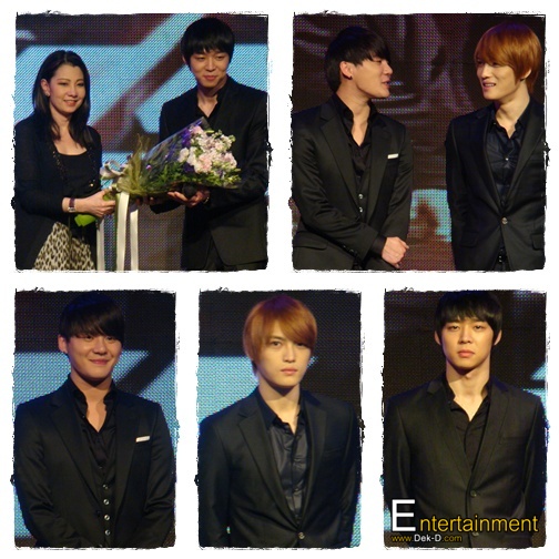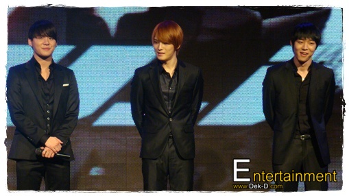 พวกเขากลับมาเยือนเมืองไทยอีกครั้งแล้วจ้ะ น้องๆ ชาว Dek-D.com สำหรับ 3 หนุ่ม JYJ ที่ประกอบไปด้วย คิมแจจุง, ปาร์คยูชอน และคิมจุนซู พร้อมคอนเสิร์ตเต็มรูปแบบครั้งแรก กับ 2011 JYJ World Tour Concert in Thailand ที่จะระเบิดความมันส์กันในวันที่ 2 3 เมษายนนี้ ณ อิมแพ็ค อารีน่า เมืองทองธานี แถมคอนเสิร์ตครั้งนี้พวกเขายังเลือกให้ไทยเป็นสถานที่แรกของการเปิดแสดงเวิลด์ทัวร์ และงานนี้หนุ่ม แจจุง ยังขอรับหน้าที่เป็นไดเรกเตอร์คอนเสิร์ตอีกด้วย!! ด้วยประสบการณ์การทำงานวงการดนตรีมานานกว่า 7 ปี และเคยได้ทำงานร่วมกับทีมงานมือฉมังมานับไม่ถ้วน รวมทั้งความสนใจส่วนตัวเกี่ยวกับการวางแผนเรื่องโชว์บนเวที จึงทำให้หนุ่ม แจจุง ขอกระโดดอาสามาดูแลงานโปรดักชั่นต่างๆ ในคอนเสิร์ตครั้งนี้ด้วยตัวเอง ถึงขนาดบินมาไทยล่งหน้าถึง 2 สัปดาห์ เพื่อมาดูแลงานต่างๆ ทางด้าน ยูชอน และ จุนซู หลังจากเสร็จสิ้นภารกิจที่เกาหลีใต้ก็รีบบินตามมาสมทบเพื่อทุ่มเทเวลาอย่างเต็มที่ให้กับการฝึกซ้อมในคอนเสิร์ตครั้งนี้ พิธีกร : JYJ ช่วยทักทายแฟนคลับชาวไทยหน่อยครับ JYJ : สวัสดีครับ JYJ ครับ จุนซู : สวัสดีครับ ผม จุนซู ครับ แจจุง : สวัดีครับ ผม แจจุง ครับ ยูชอน : สวัสดีครับ ผม ยูชอน ครับ พิธีกร : ได้กลับมาเยือนเมืองไทยอีกครั้ง รู้สึกยังไงบ้างครับ? จุนซู : ต้องขอขอบคุณแฟนคลับทุกคนที่มาต้อนรับพวกเราอย่างดีมากๆ ครับ แจจุง : ขอบคุณครับที่มารอพวกเรา และการแสดงคอนเสิร์ตในครั้งนี้ ขอบคุณจริงๆ ครับ ที่รอ JYJ ยูชอน : ขอบคุณครับ ตั้งแต่ที่ผมลงสนานบินสุวรรณภูมิ อากาศก็ค่อนข้างหนาว แต่วันนี้อากาศเริ่มร้อนขึ้นแล้ว ทำให้ผมรู้สึกนี่คือผมมาประเทศไทยจริงๆ ผมจะทุ่มเทให้คอนเสิร์ตในวันพรุ่งนี้ ฝากเนื้อฝากตัวด้วยนะครับ พิธีกร : ทราบมาว่าในคอนเสิร์ตครั้งนี้ แจจุงเป็นคนเตรียมคอนเสิร์ตทั้งหมด จึงอยากจะทราบว่าทำอะไรบ้างครับ? แจจุง : คอนเสิร์ตครั้งนี้ สมาชิกทุกคนแต่งเพลงขึ้นมาใหม่ 4 เพลง และจะเป็นครั้งแรกที่พวกเราจะเล่นเพลงเหล่านี้ให้แฟนเพลงชาวไทยได้ฟังกันครับ พิธีกร : พรุ่งนี้ก็จะได้เจอแฟนคลับชาวไทยแล้ว ไม่ทราบว่ามีอะไรมาฝากเป็นพิเศษรึเปล่า แต่ได้ยินว่าจะมีการร้องเพลงไทยด้วย? แจจุง : ใช่ครับ จะมีการร้องเพลงไทยด้วยครับ พวกเราทั้ง 3 คนเตรียมพร้อมมาด้วยกันครับ พิธีกร : สุดท้ายนี้มีอะไรอยากจะฝากถึงแฟนคลับชาวไทยบ้างไหมครับ? จุนซู : ผมไม่ได้คาดหวังว่าจะมีแฟนคลับมาให้กำลังมากมายขนาดนี้ ดังนั้นในคอนเสิร์ตครั้งนี้ผมก็จะทุ่มเทอย่างเต็มที่ และจดจำภาพของแฟนคลับทุกคนเอาไว้กลับไปที่เกาหลีด้วย ขอบคุณมากๆ ครับ แจจุง : ขอบค