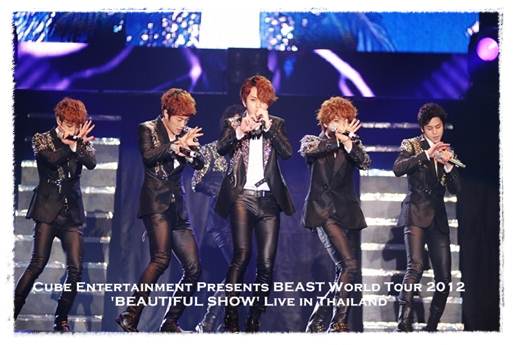 ในที่สุดก็ถึงวันที่เหล่าบิวตี้ชาวไทยต่างรอคอย กับ “Beast World Tour 2012 Beautiful Live in Thailand” คอนเสิร์ตเต็มรูปแบบครั้งแรกในไทยของ “Beast” ที่งานนี้ 6 หนุ่มอสูร “ยุนดูจุน หัวหน้าวง, จางฮยอนซึง, ยงจุนฮยอง, ยางโยซอบ, อีกีกวัง และ ซนดงอุน” ได้ขนเพลงฮิต และความสนุกสุดมันมาเสิร์ฟกันอย่างเต็มที่ เมื่อวันเสาร์ที่ผ่านมา (26 พ.ค.) ณ อิมแพ็คเอ็กซิบิชั่น ฮอลล์ 1 เมืองทองธานี เพียงแค่ 6 หนุ่มอสูร Beast ปรากฏตัวขึ้นบนเวที ก็ได้รับเสียงกรี๊ดที่ดังสนั่นทั่วทั้งฮอลล์จากเหล่าบิวตี้ชาวไทยเป็นการต้อนรับแล้ว ซึ่งพวกเขาไม่รอช้าเริ่มต้นเสิร์ฟความสนุกด้วยเพลง Special ต่อด้วยเพลง Soom (Breath) และเพลงสุดฮิตอย่าง Shock ที่ไม่ได้มาโชว์แค่ลีลาแดนซ์สุดมันเท่านั้น แต่ยังมีการยิงเลเซอร์สีเขียว – แดง สลับกันไปมาด้วย และพักเบรกด้วยการพูดคุยทักทายที่ช่วงนี้ “ยุนดูจุน” ขอขโมยซีนด้วยประโยคภาษาไทยว่า “สุดยอด” ก่อนจะสนุกกันต่อกับเพลงเดบิวของพวกเขาอย่าง Bad Girl หลังจากนั้นก็ขอตัวไปเปลี่ยนเสื้อผ้าและกลับขึ้นเวทีมาพร้อมขาตั้งไมค์ เพื่อโชว์พลังเสียงที่สุดยอดในเพลง Easy ต่อด้วยเพลงบัลลาดจังหวะหวานนุ่มทั้ง Yet, Clenching a Tight Fist และ I Knew It มาถึงช่วงโซโล่ ซึ่งเริ่มที่ “จางฮยอนซึง” กับเพลงจังหวะนุ่มๆ Don't your mind ต่อด้วย “ยงจุนฮยอง” ที่มาในชุดสูทสีแดงที่ช่วยเพิ่มเสน่ห์ความร้อนแรงให้เขา กับเพลง Living Without You ตามติดมาด้วยการดูเอ็ดร่วมกันของ “ยุนดูจุน & ซนดงอุน” ที่มาในบทเพลงซึ้งๆ อย่าง When The Door Closes ซึ่งในระหว่างโชว์นี้ เหล่าบิ้วตี้ชาวไทยก็ได้ชูป้าย “HBD Dongwoon” ขึ้นมา เพราะใกล้ถึงวันเกิดของมักเน่ “ซนดงอุน” แล้ว ต่อด้วยการดูเอ็ดสุดร้อนแรงและเซ็กซี่ของ “อีกีกวัง & จางฮยอนซึง” ในเพลง Let's It Snow และปิดท้ายช่วงนี้ด้วยการดูเอ็ดของ 2 หนุ่มสุดน่ารัก “ยงจุนฮยอง & ยังโยซอบ” กับเพลง Thank You ต่อด้วยเพลง You ที่ทำเอาเหล่าบิวตี้ชาวไทยต่างอิจฉา เมื่อ 6 หนุ่มอสูร Beast ได้เลือกผู้โชคดีขึ้นเวทีไป 1 คน เพื่อนั่งในชิงช้าที่ตกแต่งด้วยซุ้มดอกไม้ ซึ่งระหว่างร้องเพลงหนุ่มๆ ก็ผลัดกันเซอร์วิสสาวผู้โชคดีคนนี้อย่างเต็มที่ ความหวานยังต่อเนื่องด้วยเพลง Should I Hug Or Not ที่พวกเขาเดินไปแจกดอกกุหลาบให้เหล่าบิ้วตี้ชาวไทย หลังจากนั้นเพลง Lightless ดังขึ้นไฟในฮอลล์ก็ปิดลง เหลือเพียงแสงไฟฉาย 4- 5 ดวงจากแดนเซอร์เท่านั้น แต่ก็ไม่สามารถบดบังรัศมีของ 6 หนุ่มอสูร Beast ให้ลดลงได้เลย จากนั้นพวกเขาก็ชวนมาหวานละลายกันต่อในเพลง On A Rainy Day และเพลง The Fact ที่ทำเก๋ด้วยการสาดไฟสว่างสลับไปยังสมาชิกแต่ละคนที่ต้องออกมาโชว์สเต็ปการเต้นสุดเท่ ความสนุกยังไม่หมดแค่นั้น ยังต่อด้วย Fiction เพลงสุดฮิตที่มาพร้อมท