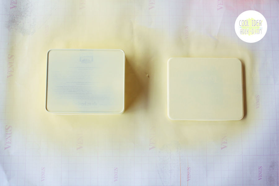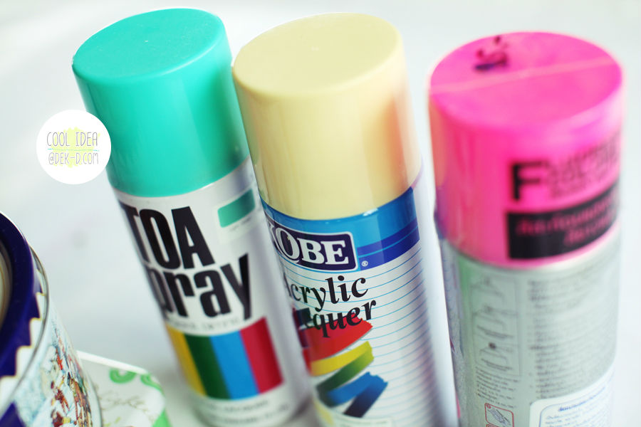 1. เช็ดคราบกาวที่กระป๋องให้สะอาด แล้วพ่นสีพื้นทับ 1 ชั้น