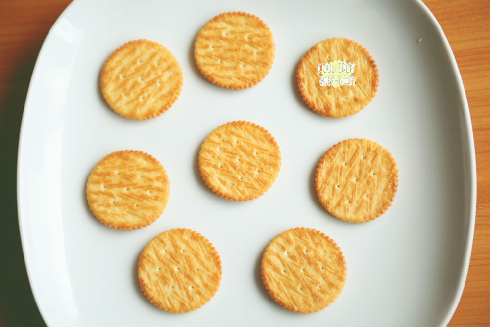 1. เรียงแครกเกอร์ใส่จานขนาดที่ใหญ่พอที่เข้าไมโครเวฟได้
