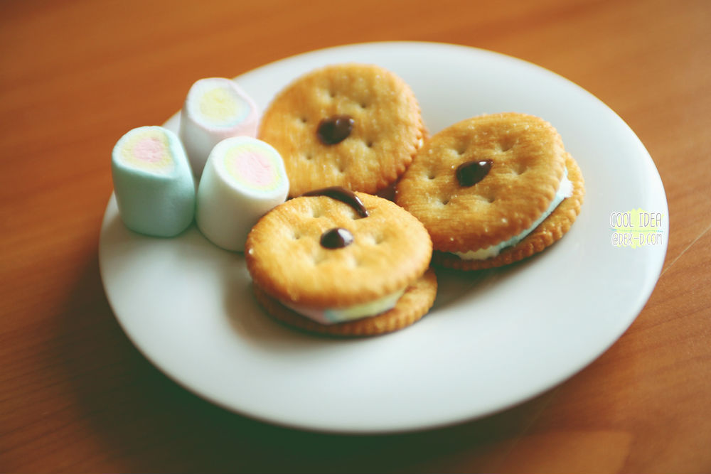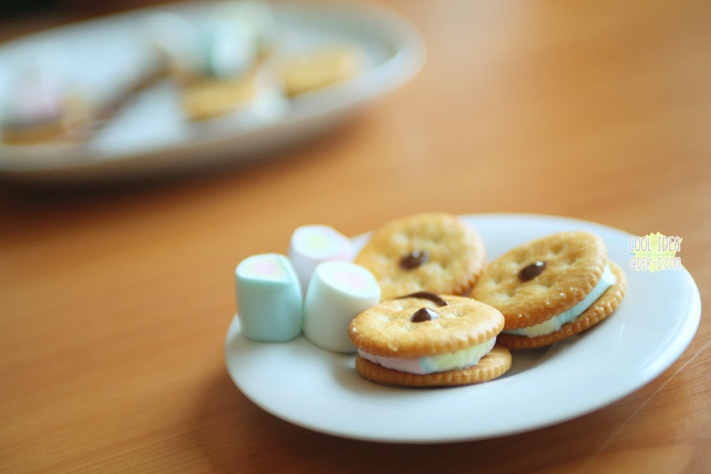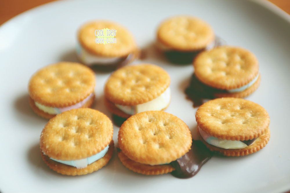 ปล.เอาไม้จิ้มฟันจิ้มมาร์ชเมลโลว์กับแครกเกอร์ไว้แล้วมันจะไม่ค่อยไหลออกนอกแครกเกอร์เพราะเวลามันไหลมาที่จานแล้ว ล้างออกโครตยาก