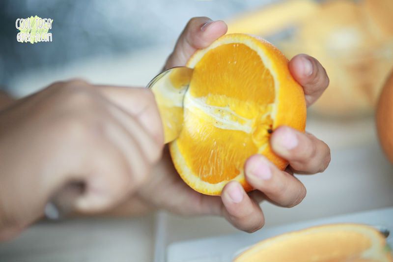 2.หรือใครจะคั้นน้ำส้ม แล้วเหลือเปลือกมาใช้ก็ได้นะคะ เก๋เลย |