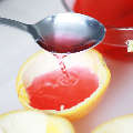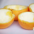 6. คนจนละลาย แล้วตักใส่เปลือกส้มที่คว้านไว้ |