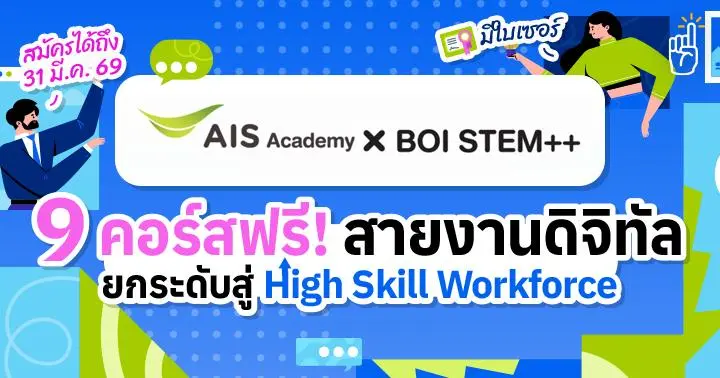AIS และ BOI STEM++ เปิด 9 คอร์สเรียนฟรีสายงานดิจิทัล ยกระดับสู่ High-Skill Workforce
