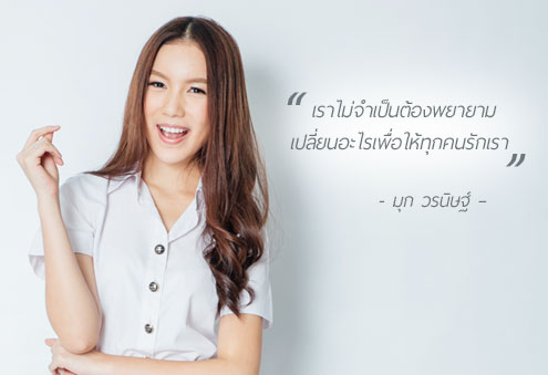 เริ่มแรกคือมุกเข้า GMM TV ในฐานะศิลปินฝึกหัด แล้วก็มีโอกาสได้เล่นซีรีส์ ได้ร้องเพลงประกอบ มาทันเวลาพอดี มุกเองก็เป็นแค่เด็กผู้หญิงคนนึงที่มีความฝัน แต่ได้มาทำอะไรที่เป็นตัวเอง ก็ต้องขอบคุณทุกคนจริงๆ ค่ะ ที่ให้โอกาส ยังไงก็ติดตามกันไปเรื่อยๆ นะคะ