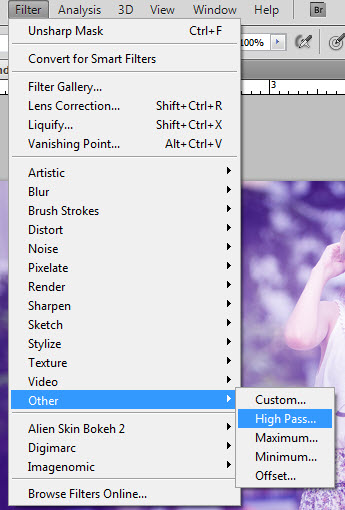 จากนั้นไปที่ Filter > Other > High Pass