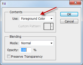 จะปรากฏหน้าต่างขึ้นมา ในช่องที่ลูกศรสีแดงชี้อยู่ ให้เลือกเป็น Foreground Color แล้วก็กด ok ถือว่าเสร็จขั้นตอน