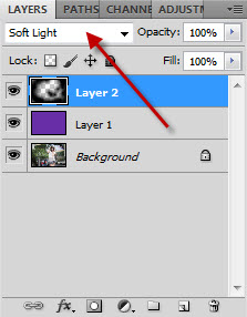 จากนั้นเปลี่ยน mode ของ layer2 ให้กลายเป็น Soft Light