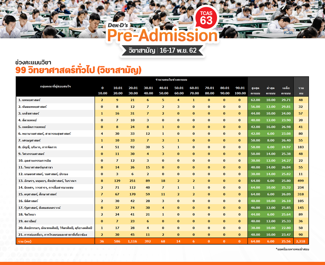 | 10 | อักษรฯ, มนุษยฯ, ศิลปศาสตร์, โบราณฯ (พื้นฐานวิทย์)