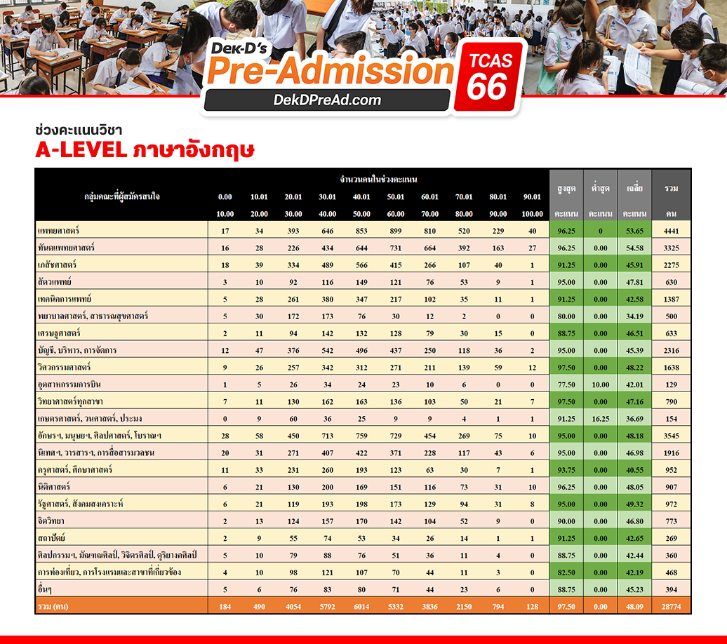ช่วงคะแนน A-Level ภาษาอังกฤษ