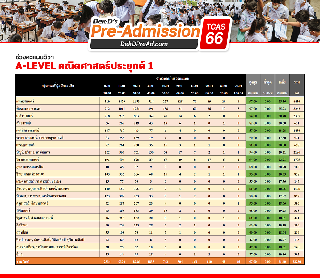 ช่วงคะแนน A-Level คณิตฯ ประยุกต์