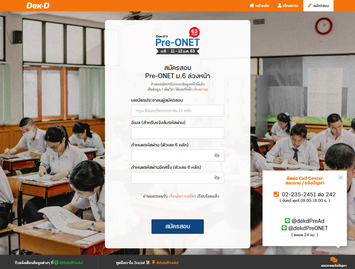 Step 1 : เริ่มลงทะเบียนสมัครสอบ