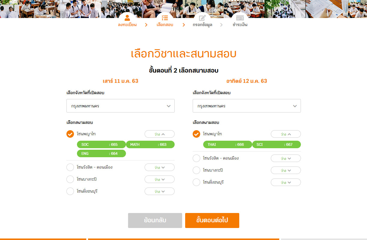 Step 2.2 : เลือกสนามสอบ