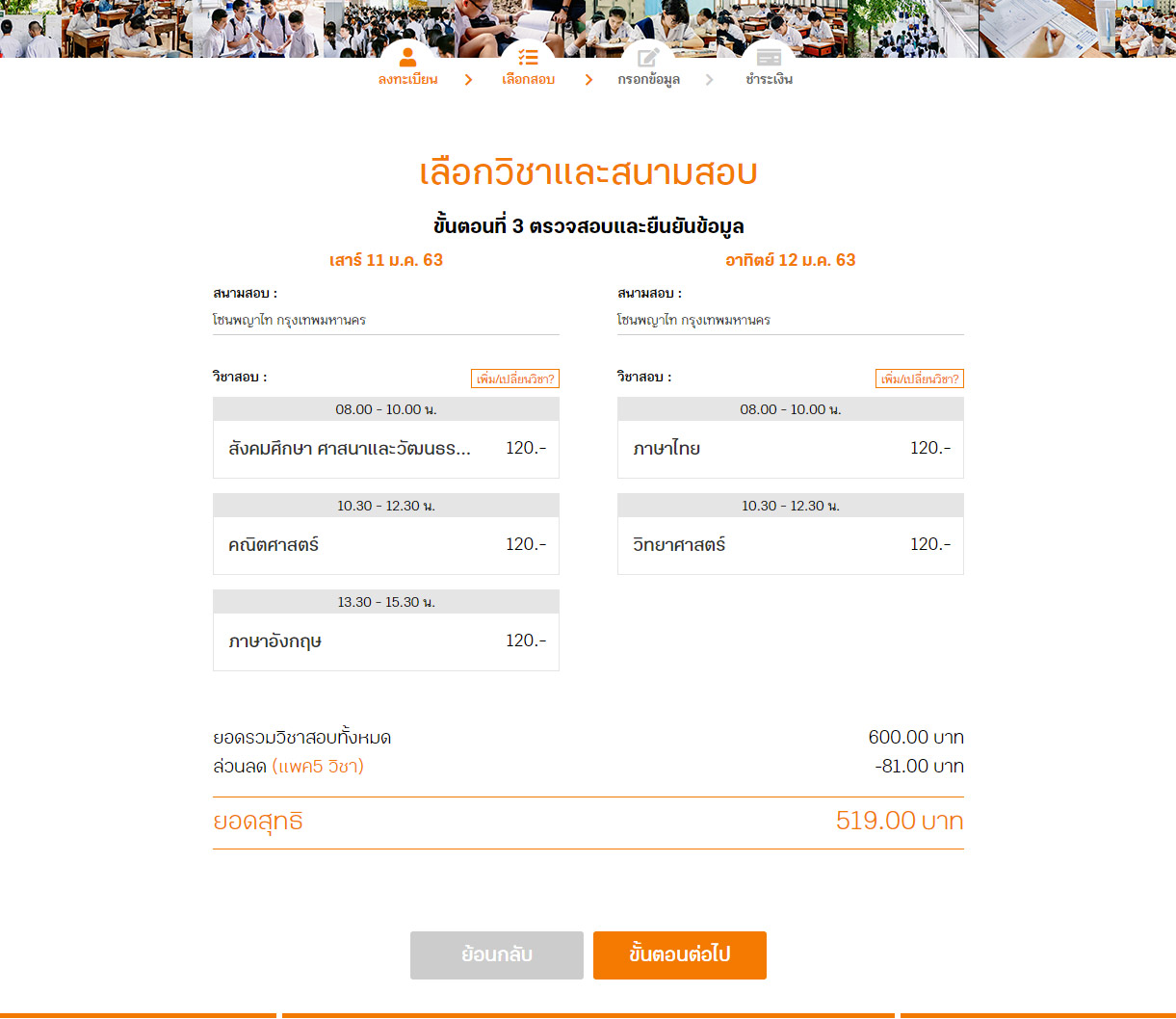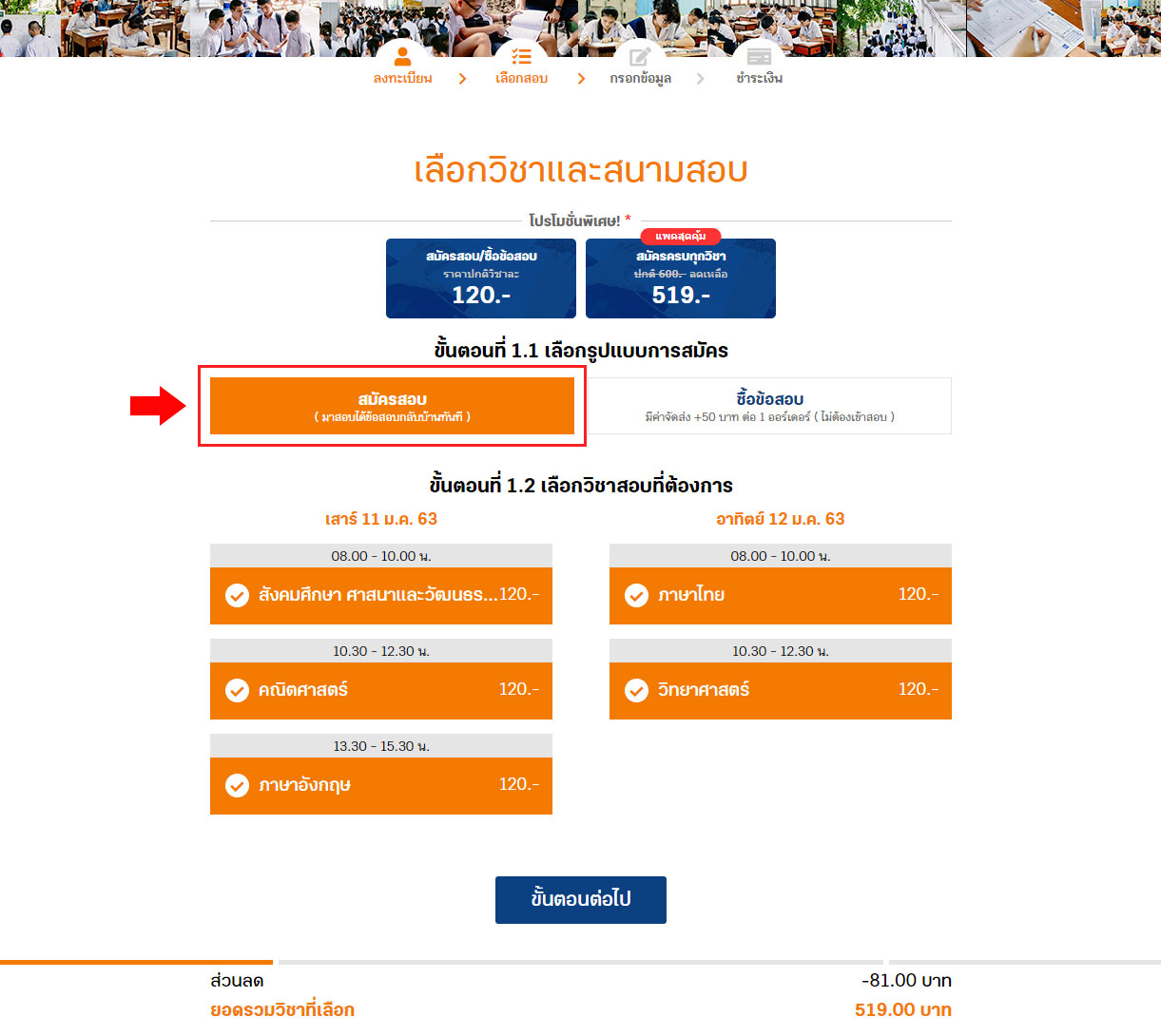 Step 2.1 : เลือกวิชาสอบ