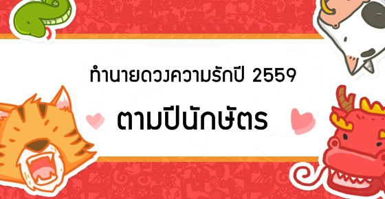 ดูดวงตามปีนักษัตร ปี 2559 นี้ความรักของคุณจะเป็นเช่นใด ขอบคุณข้อมูล http://www.chinesefortunecalendar.com/