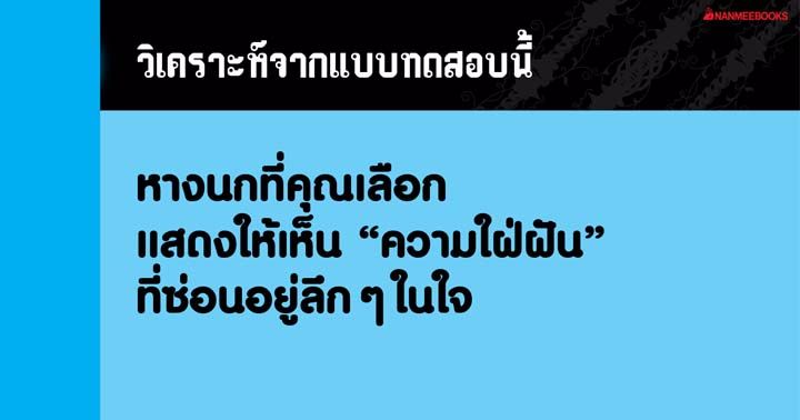 ในทางจิตวิทยาหางนกแสดงถึงความใฝ่ฝันที่ซ่อนอยู่ลึกๆในก้นบึ้งของจิตใจและแสดง