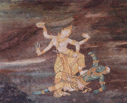ทศกัณฐ์เนรมิตตัวให้เป็นสีทองเมือทศกัณฐ์ไปเกี้ยวพาราสีใคร