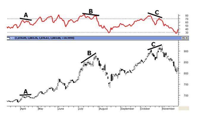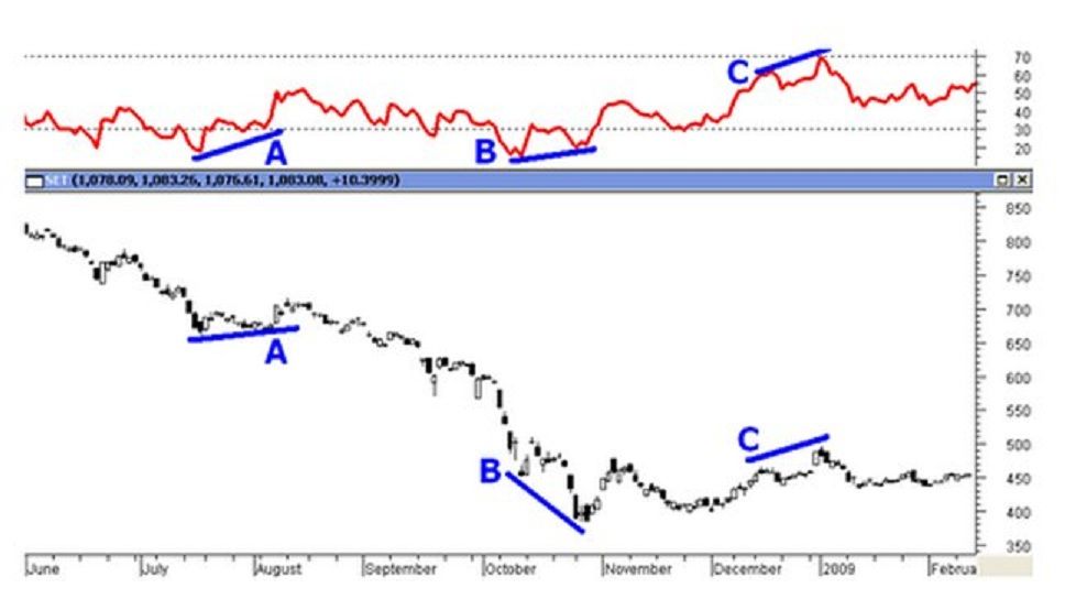 20.จากรูป จุดใดคือ Bearish Convergence ที่มีนัยยะ (มีความสำคัญ)?