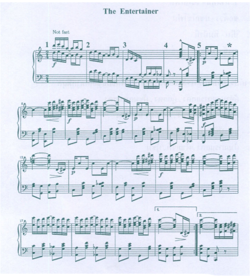 จากโน้ตเพลง The Entertainer โน้ตเพลงห้องที่ 1 ถึงห้องที่ 4 จังหวะที่ 2 ตรงกับข้อใดที่สุด
