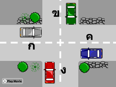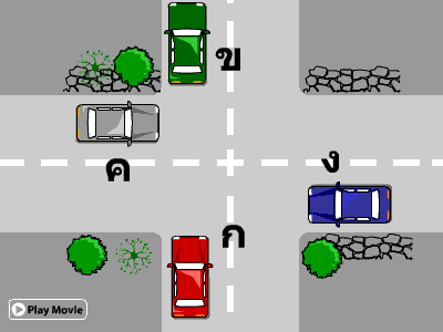 ผู้ขับขี่รถคัน ก. ต้องการจะขับรถตรงไป จะต้องปฏิบัติอย่างไร