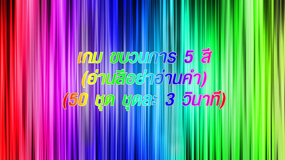 "เกม ขบวนการ 5 สี (อ่านสีอย่าอ่านคำ) (50 ข้อ ข้อละ 3 วินาที)"