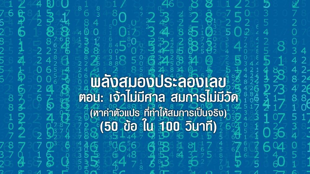 พลังสมองประลองเลข ตอน เจ้าไม่มีศาล สมการไม่มีวัด (หาค่าตัวแปรจากสมการ ง่ายๆ) (50 ข้อ ใน 100 วินาที)