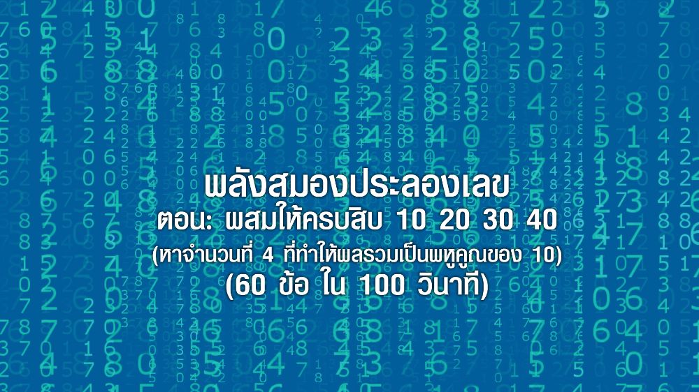 พลังสมองประลองเลข ตอน ผสมให้ครบสิบ 10 20 30 40 (60 ข้อ ใน 100 วินาที)