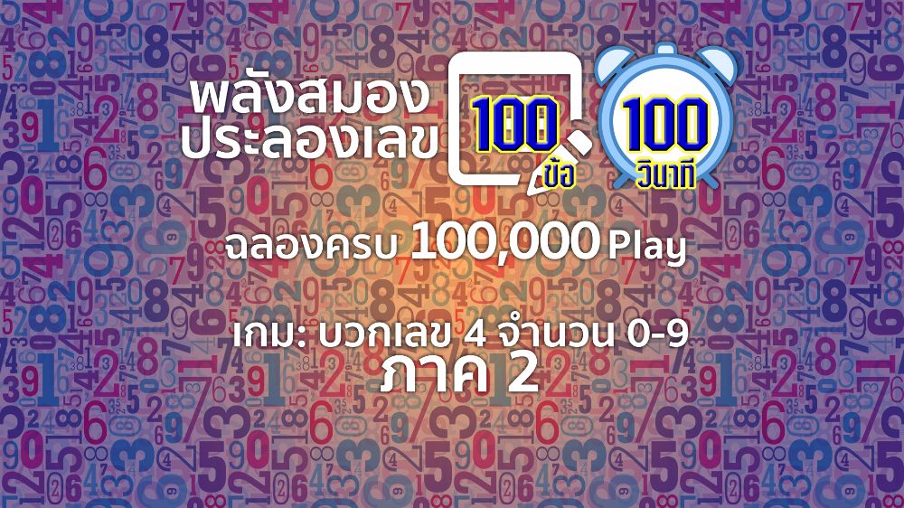 พลังสมองประลองเลข ตอน บวกเลข 4 จำนวน 0-9 "ภาค 2" (100 ข้อ 100 วินาที)
