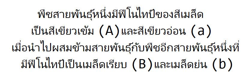 จากภาพด้านล่าง อยากทราบว่า ลักษณะใดไม่น่าจะเกิดขึ้นในชั่วรุ่นลูก หากลักษณะฟีโนไทป์ของจีน B ถูกควบคุมด้วยลักษณะด้อยของจีน A