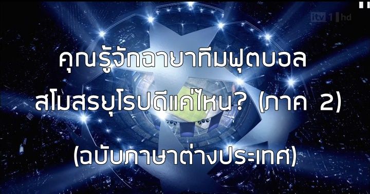 "คุณรู้จักฉายาทีมฟุตบอลสโมสรยุโรปดีแค่ไหน (ฉบับภาษาต่างประเทศ) ภาค 2"